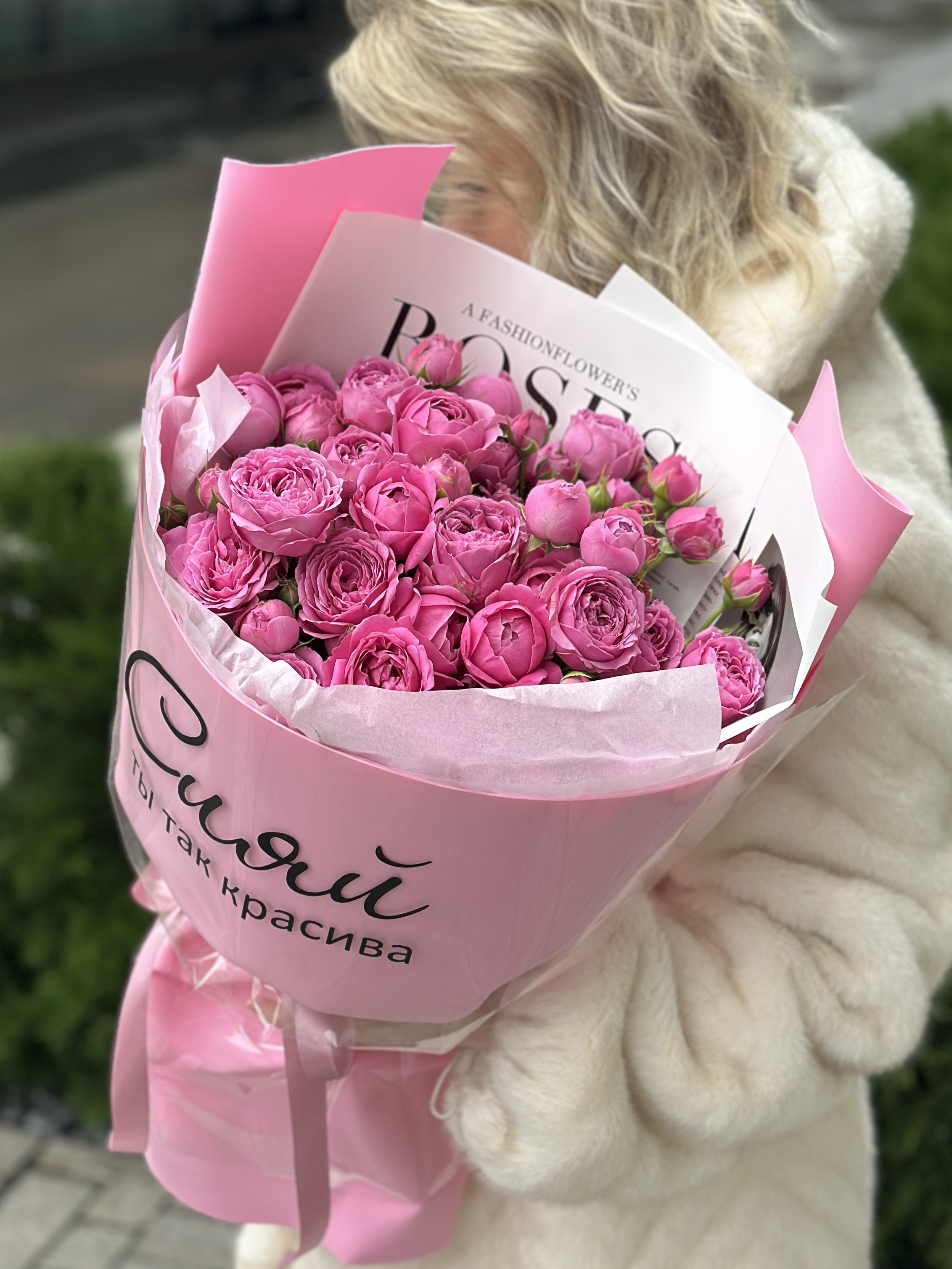 Эти нежные пионовидные розы, будто только сорванные с пушистого ароматного куста, привнесут искренние эмоции и радость. Закажите этот букет с доставкой в Казани, и каждый бутон станет частью вашего собственного сада.
